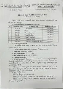 Tuyển sinh trung cấp năm học 2014 – 2015
